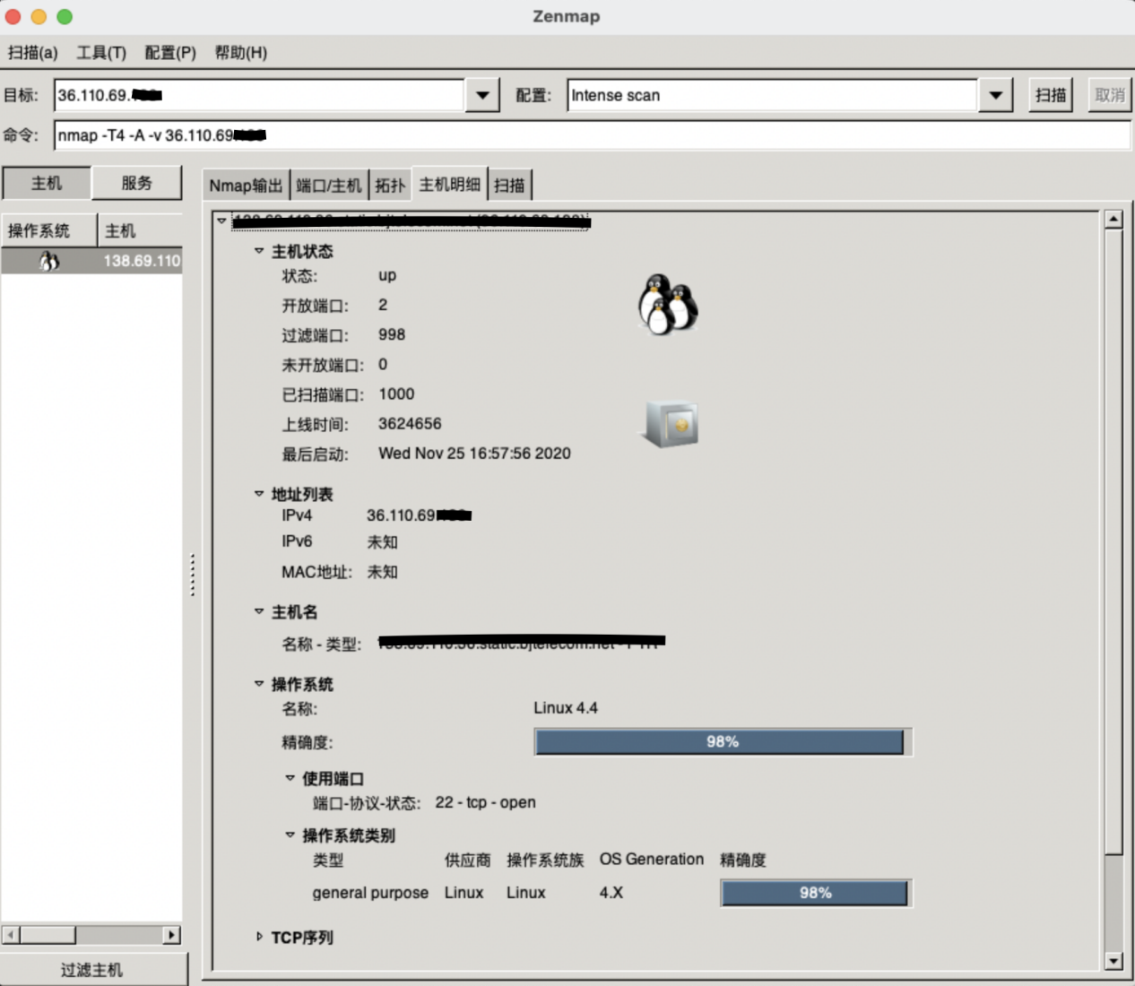 例如某企業的SSL VPN服務端部署在企業網絡DMZ區,需要對外常開443端口,以便VPN客戶端能夠隨時連接,驗證合法身份后建立加密隧道。由于VPN服務器有端口長期暴露在公網,這就給了攻擊者可乘之機。攻擊者可以在公網通過端口掃描工具,嗅探服務端的信息如服務器操作系統及版本等,再利用操作系統的已知漏洞,為進一步攻擊提供突破口。