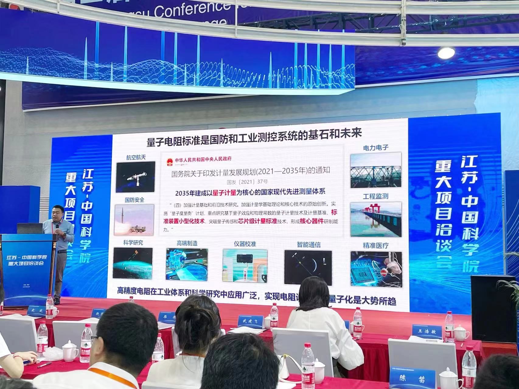 在江蘇——中國科學院重大項目洽談會的路演中,王浩敏研究員發表了題為《提供最精確量值的可移動量子電阻標準裝置》的演講,他表示量子電阻標準支撐了整個科學和工業測量參比體系,在電子信息、航空航天、醫療以及國防等領域有著廣泛的用途。量子電阻是可以直接測量且只與自然常數相關的宏觀電學物理量。目前,中、美、日等國家級計量實驗室均建成了量子霍爾電阻標準裝置(QHRS),并在進行推廣,我國也正在開展針對用于新一代量子電阻的芯片技術研發。QHRS的研制將帶來電學測量原理、方法和儀器形態的全面創新,并形成獨特的材料與設備產業,從而對信息產業結構產生巨大影響。