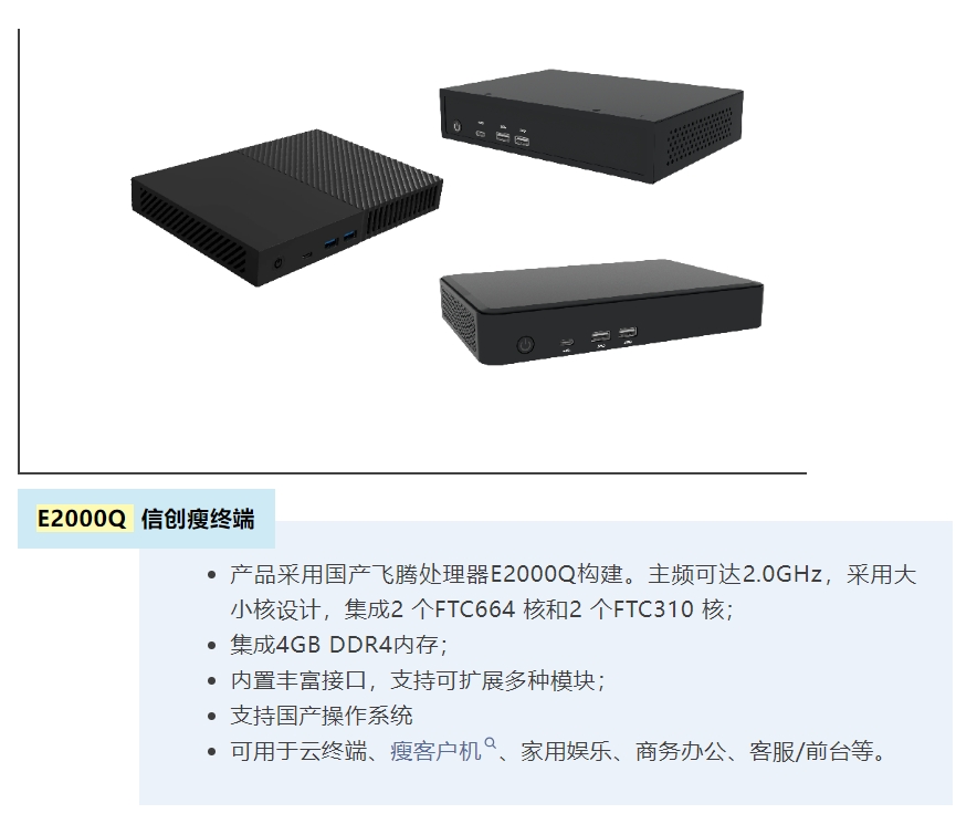 此外,云涌科技還帶來了基于 E2000Q 構(gòu)建的信創(chuàng)瘦終端和網(wǎng)安硬件平臺(tái),以及可信根、加密卡、可信服務(wù)器等系列產(chǎn)品,同樣在現(xiàn)場(chǎng)備受矚目。